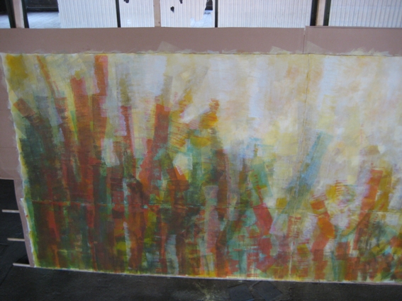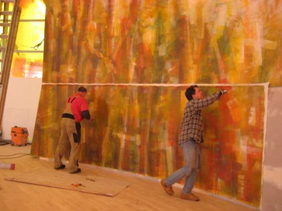 die Altarrückwand entstand ein Gemälde auf Leinwand