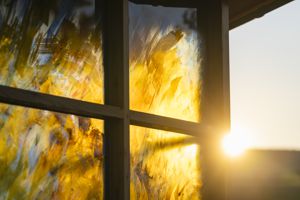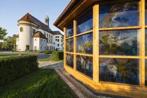 Barmherzigen Brüder in Gremsdorf. Die Glasgestaltung (ca, 35 qm) ist inspiriert vom berühmten "Sonnengesang" des Hl. Franziskus. |